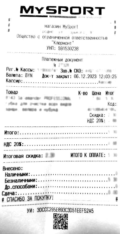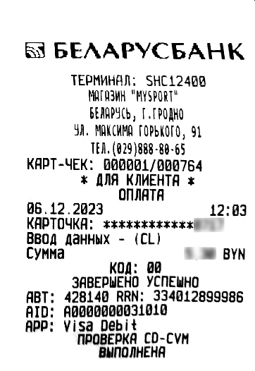 - После проведения оплаты в магазине выдачи вместе с любым товаром вы получаете чек (примем оплаты банковской картой см. ниже).